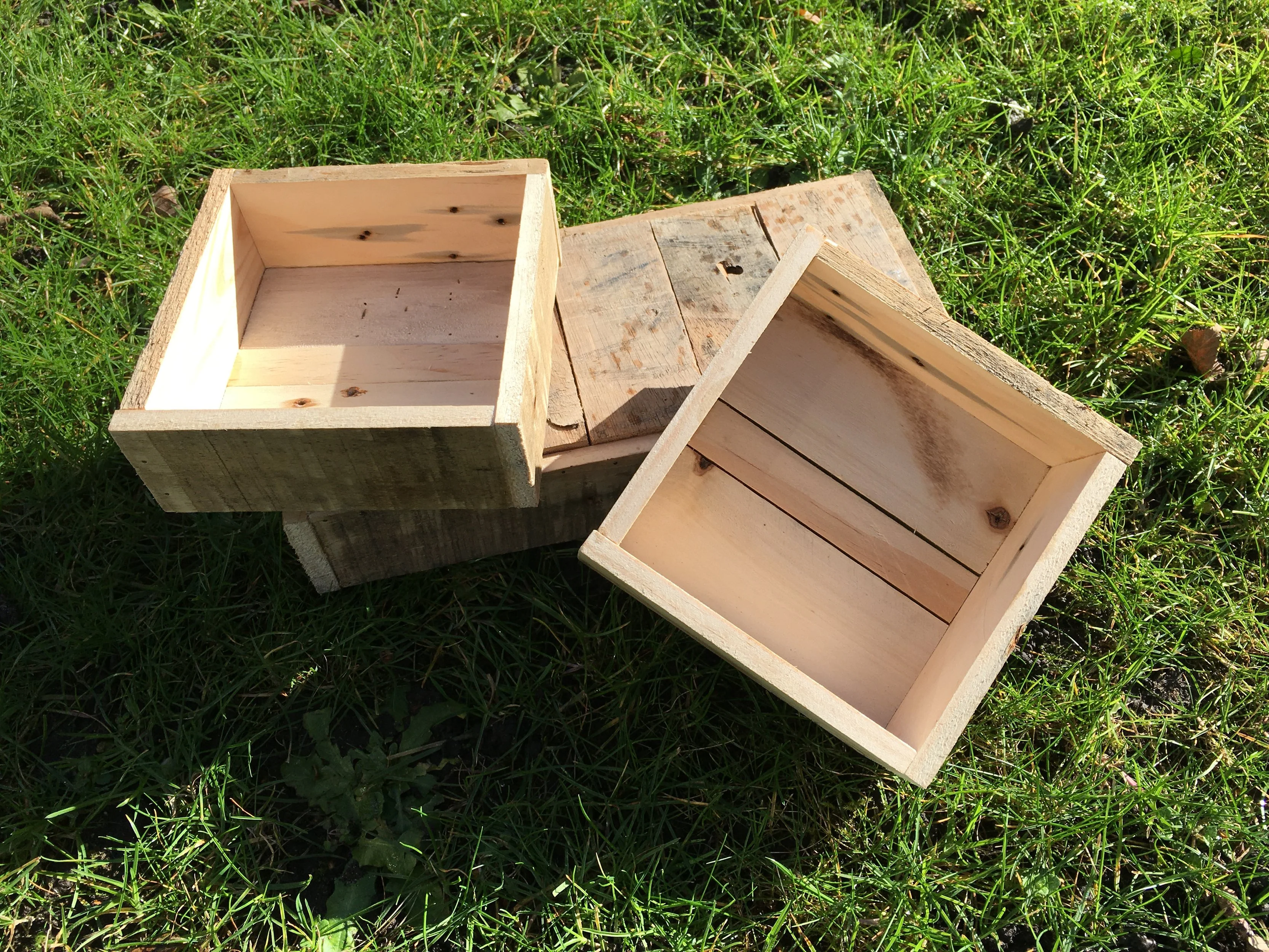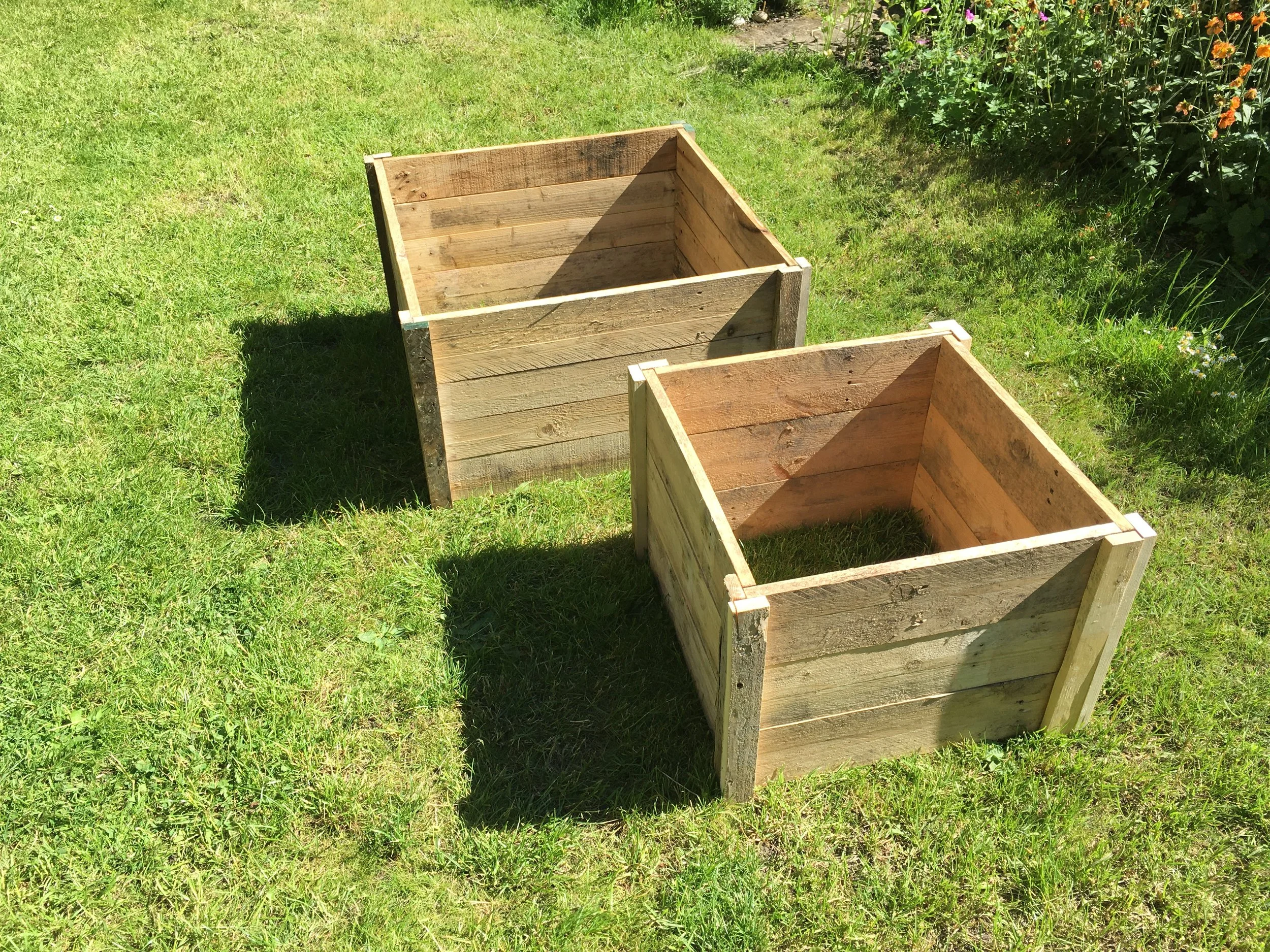 Larger boxes made from full size planks of pallet wood can be used for compost containers, leaf stores or raised planting beds.