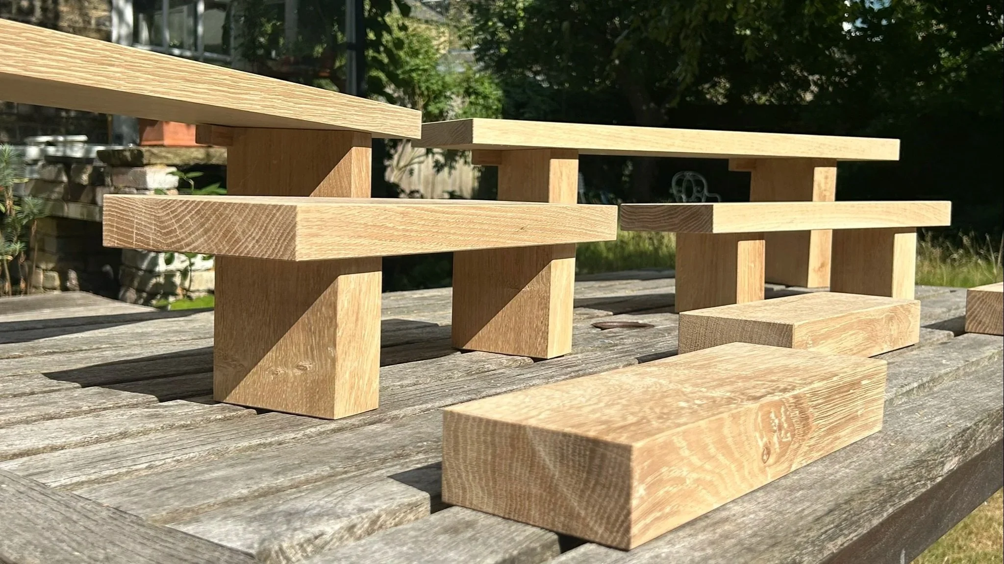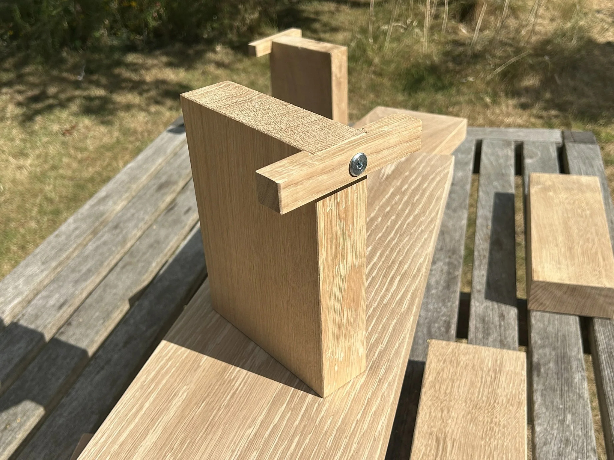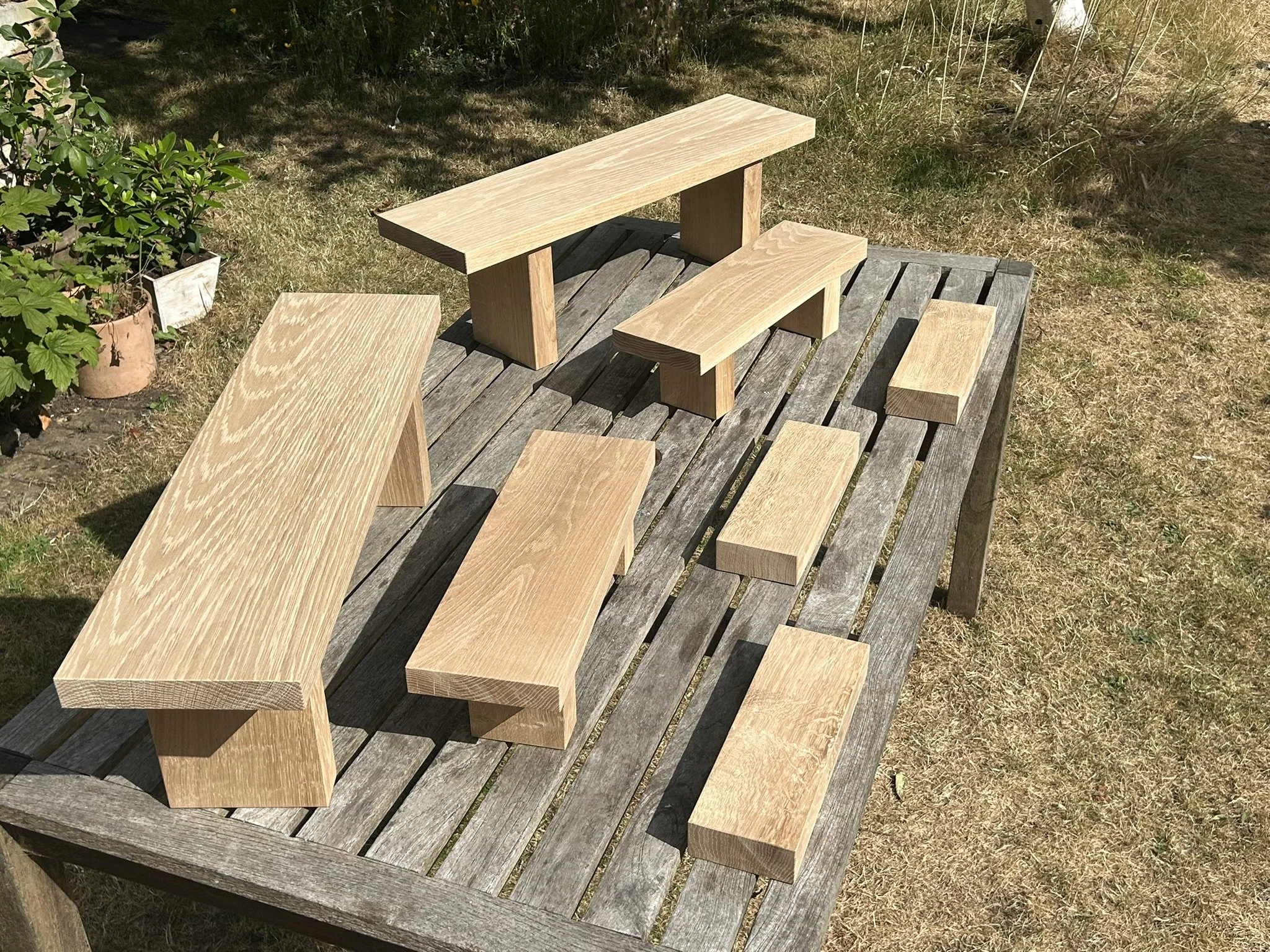 Simple, solid oak display shelves, made for Kathy Coulter a ceramisist working in West London.
